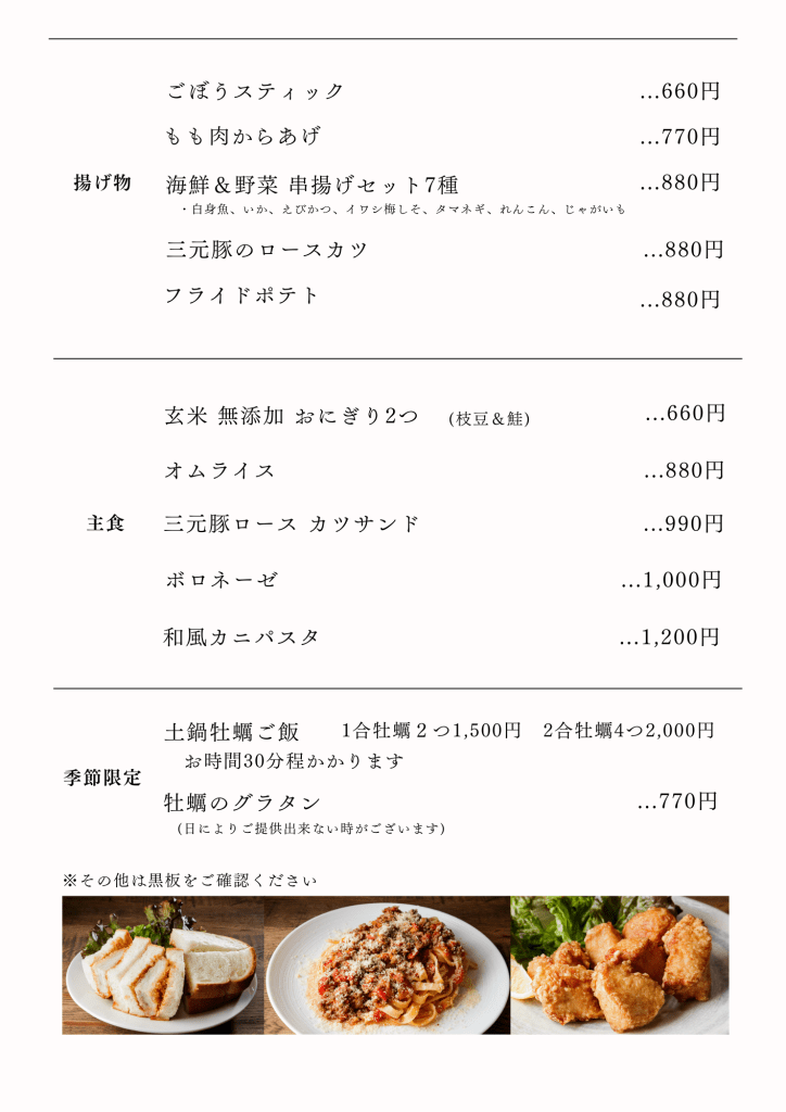 ※メニューは一例であり時期により提供できない事がございます